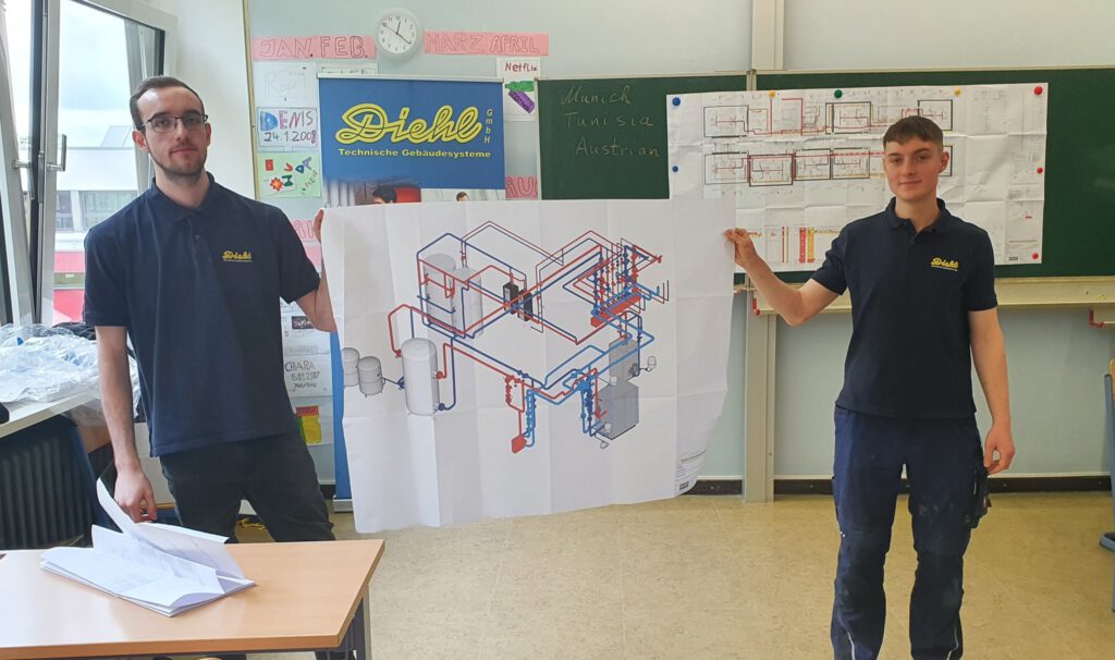 Julian Weinert (Azubi Anlagenmechaniker SHK) und Julian Maurer (Azubi Techn. Systemplaner) stellten sich und ihre Erfahrungen innerhalb der Ausbildung vor.