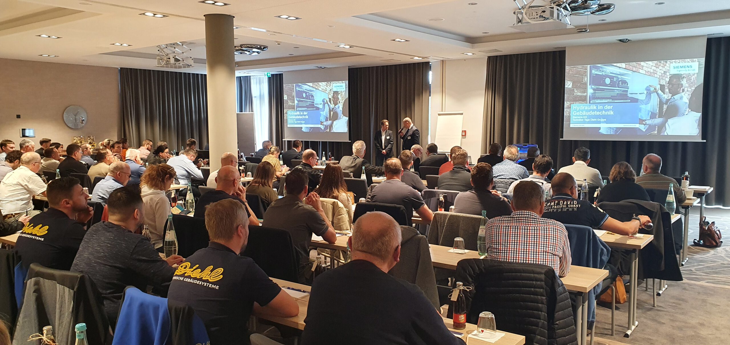Die Firma Siemens war sogar mit 3 Gastdozenten vertreten. Matthias Blatt, Achim Wagner und Jozsef Fischer präsentierten unter anderem die Möglichkeiten und Vorteile von intelligenten Schalt- und Regelsystemen für Heiz- und Kühlkreisläufe. Da hierdurch sowohl die Energieeffizienz gesteigert als auch die Betriebskosten gesenkt werden können, waren dies spannende und höchst aktuelle Themen.