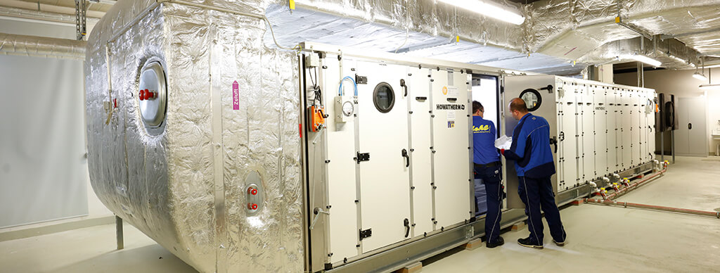 Um ein angenehmes Raumklima herzustellen, regeln komplexe Anlagen die Raumtemperatur, Luftfeuchtigkeit und Luftzirkulation sowie die Frischluftversorgung über die aufbereitete Außenluft.